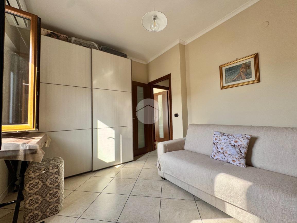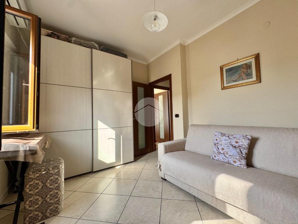 Il disimpegno conduce alla zona notte, composta da una confortevole cameretta, un bagno con doccia per momenti di puro relax, e una spaziosa camera da letto che si affaccia su un secondo balcone.