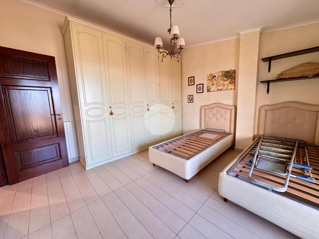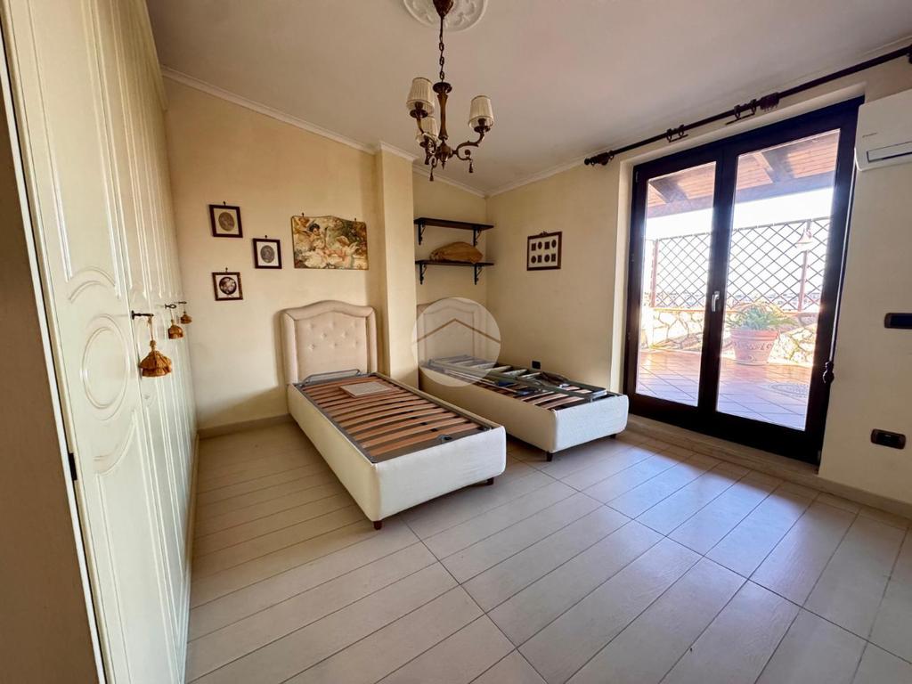 Proseguendo lungo il corridoio, si accede alla zona notte, composta da due ampie camere da letto matrimoniali. La camera patronale è dotata di un bagno privato con doccia, offrendo un tocco di esclusività e comfort. Anche il bagno patronale é servito di doccia. Entrambe le camere hanno accesso diretto a un secondo terrazzo a livello.