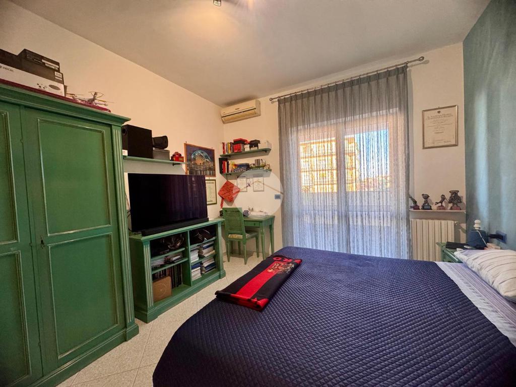 Un corridoio spazioso conduce al salone e a due ulteriori camere da letto di generosa metratura, ciascuna delle dimensioni di una matrimoniale, oltre al bagno patronale. Tutte le stanze godono di un affaccio su un terrazzo a livello e un balcone, offrendo spazi aperti e panorami suggestivi.