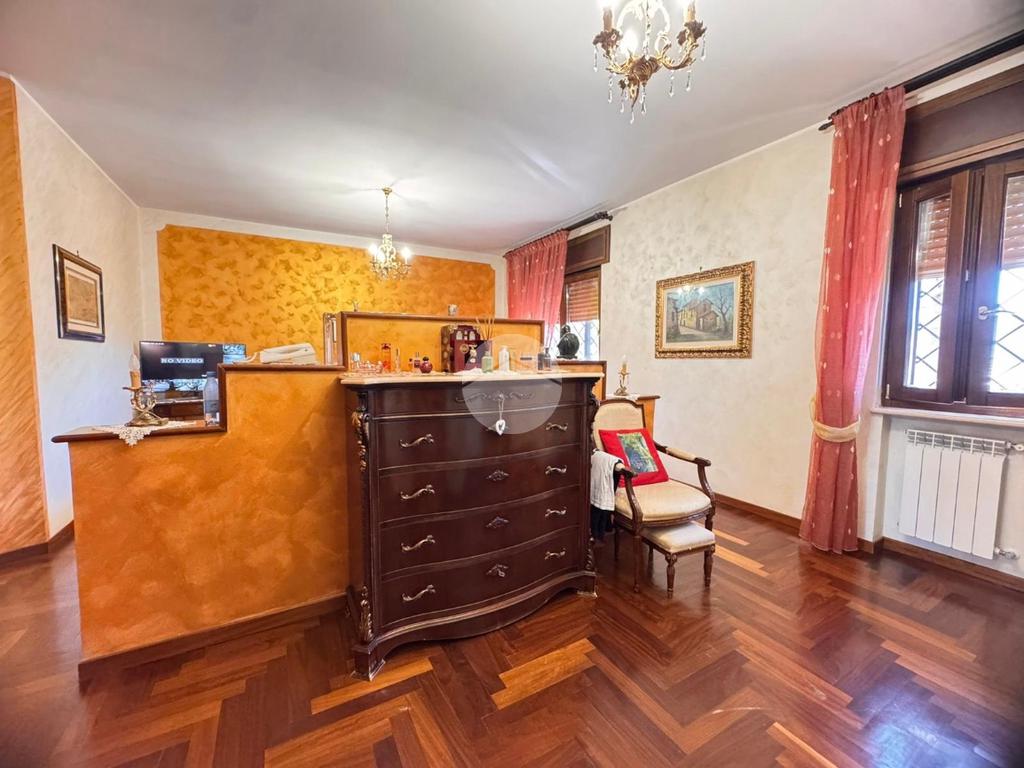 Entrando, sarete accolti da un ampio salone dotato di un camino che emana calore e comfort, ideale per momenti di relax o per accogliere ospiti in un ambiente raffinato. Dal salone si accede a uno studio, perfetto per lavorare da casa o per coltivare le proprie passioni, e a una camera per gli ospiti, garantendo loro privacy e comfort.