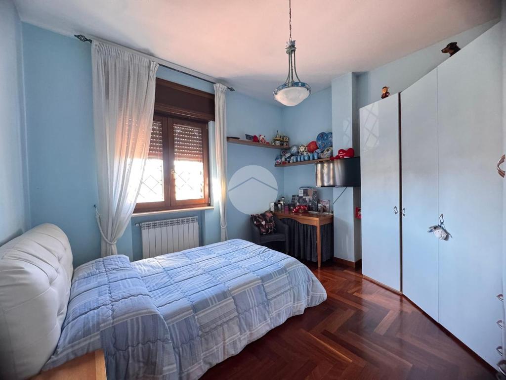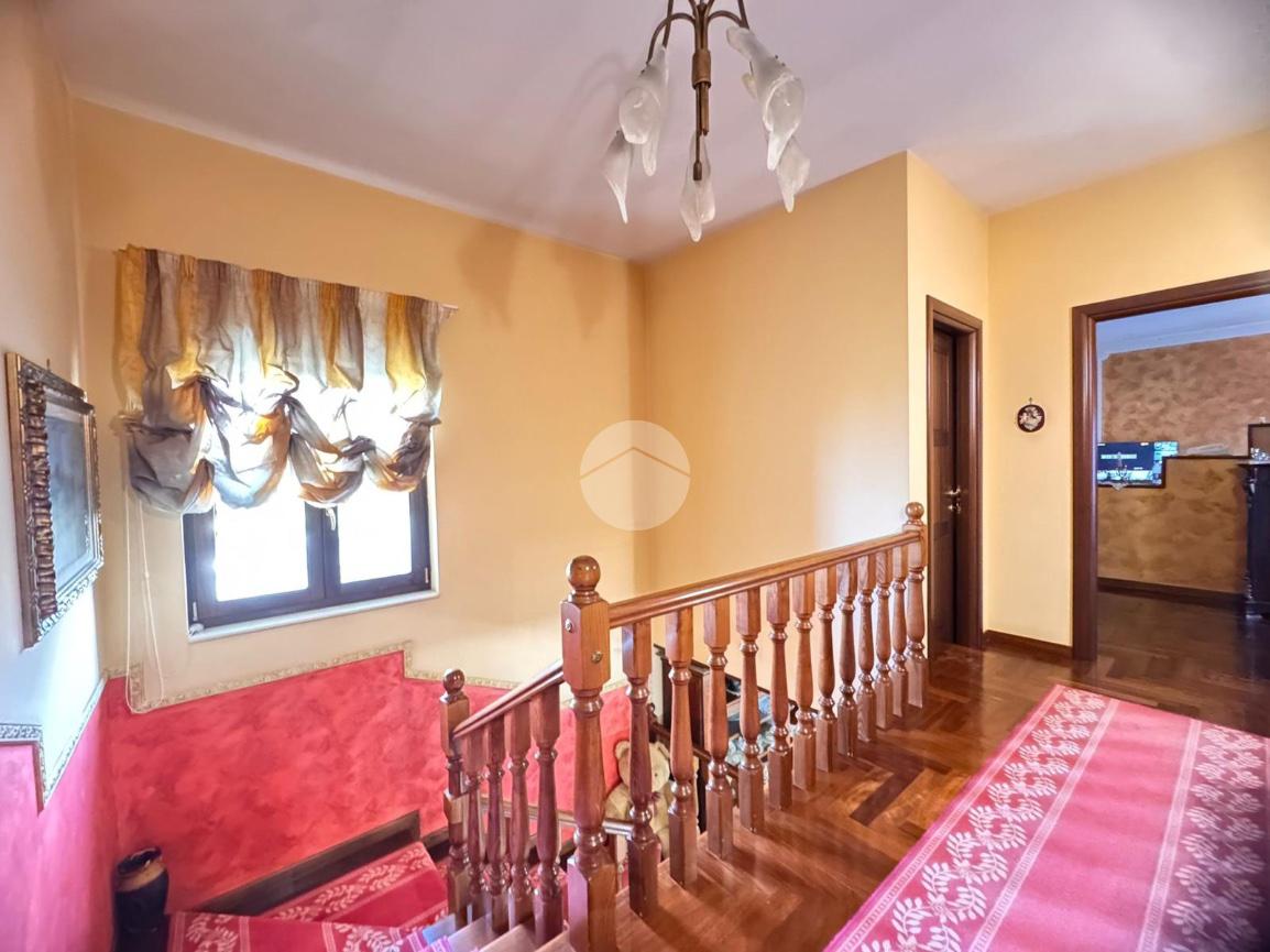 La scala in legno, elemento di grande pregio, conduce al piano superiore dove si trovano due camerette, ognuna con il proprio bagno, perfette per i più giovani o per gli ospiti. La camera principale è un rifugio di pace, completa di cabina armadio e bagno privato, offrendo un lusso senza compromessi.