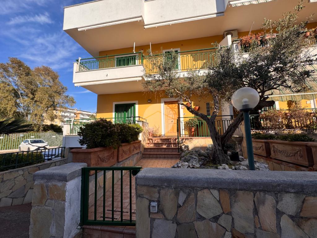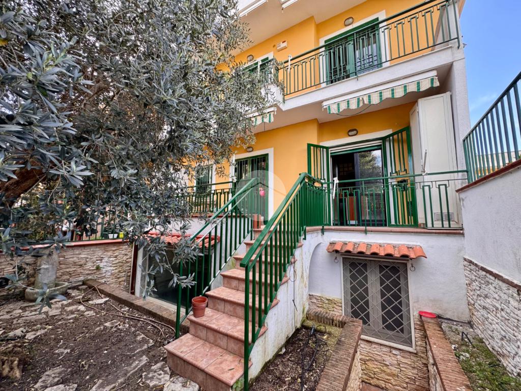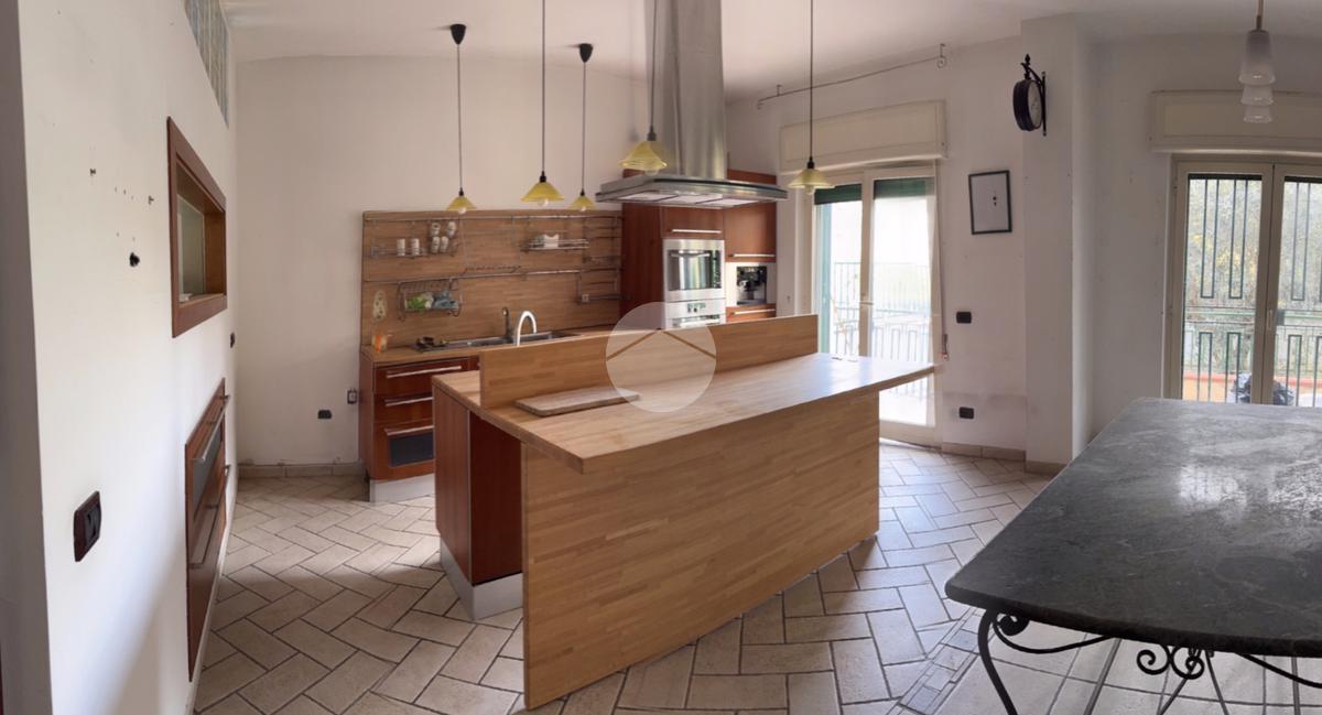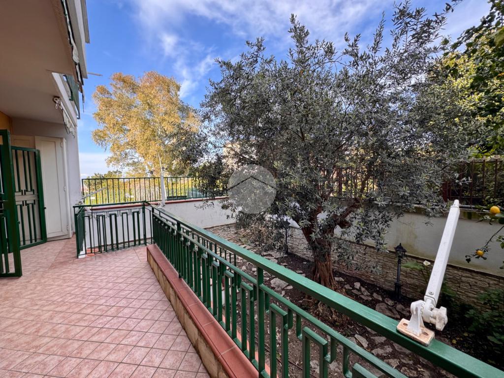 L'accesso alla villa avviene attraverso un affascinante patio che conduce al terrazzino, da cui si entra nel salone principale. Questo spazio ampio e luminoso è il cuore pulsante della casa, ideale per accogliere momenti di convivialità. Una porta scorrevole separa il salone dalla cucina, un ambiente spazioso e confortevole, perfetto per le esigenze di famiglie numerose. La cucina, con il suo arredamento su misura che verrà lasciato in dotazione, vanta un doppio affaccio su un balcone che si apre su un giardino impreziosito da un maestoso albero d'ulivo. A completare questa zona giorno troviamo un pratico bagno di servizio.